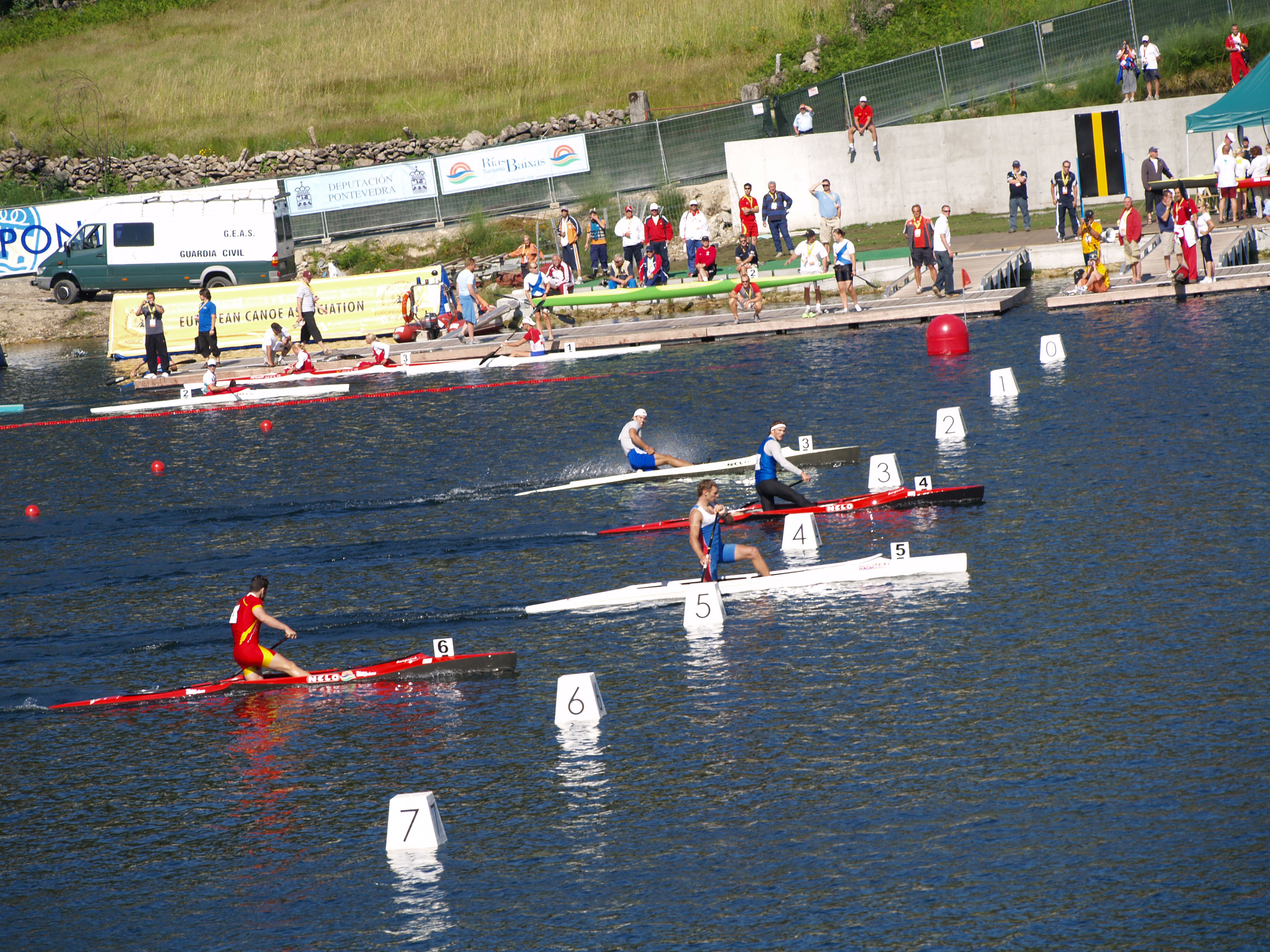 Verónica Moreno, Silvia Vázquez, Laura Pedruelo e Victoria Fraile compiten a media mañá nas semifinais de K-4, 1000 metros. Saul Cavriotto, Manuel Muñoz, Jaime Acuña e Borja Prieto compiten na semifinal da mesma categoría uns 10 minutos despois.