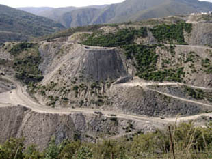 Dende a estrada LU 651, que transcorre un bo tramo á beira da explotación, é fácil conseguir unhas boas panorámicas da canteira. A vía delata aínda os cambios de trazado forzados polo esboroamento da ladeira. As fochancas do seu firme revelan a inestabilidade do chan. Parados á beira da estrada, observamos na parte superior da montaña unha fenda que racha a superficie da montaña.