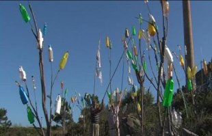 Disto fala o filme. Dúascentas botellas pintadas de cores, enxergadas en paus, movidas polo vento que azouta a desembocadura do Miño. Arte visual e arte sonora (as botellas brúan cos refachos de aire), land-Art inconsciente, mais land-Art en estado puro, realizado por Chacurro e José María, dous anciáns do concello que un bo día encetaron unha obra necesariamente perecedeira, pero que ten deixado a súa pegada na paisaxe do monte da Picota.