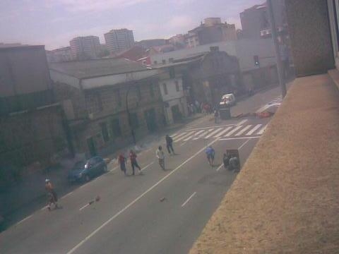 Segundo informa Europa Press, pouco despois das 13:00 horas deste mércores, unha ducia de furgóns policiais chegaron a toda velocidade á zona, onde non estaba a haber incidentes. Logo duns momentos de tensión, os axentes cargaron duramente con pelotas de goma. Os traballadores queimaron un bus urbano que empregaron como barricada. Posteriormente, atrinchieráronse en Barreras, onde permanecen rodeados pola policía.
