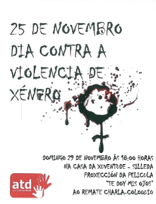 A asociación Avanza Trasdeza convida todo o mundo a participar na proxección da película Te doy mis ojos, o domingo ás 18:00 horas no salón de actos da Casa da Xuventude, con motivo do Día Internacional da Eliminación da Violencia contra a Muller, esta cuarta feira.