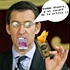 Feijoo apareceu caricaturizado durante uns minutos cun billete de 500 euros na boca e outro de dólar ardendo na súa man.