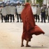 Unha decena de monxes foron golpeados e outros 80 foron detidos. O exército montou barricadas en diversos puntos da cidade.